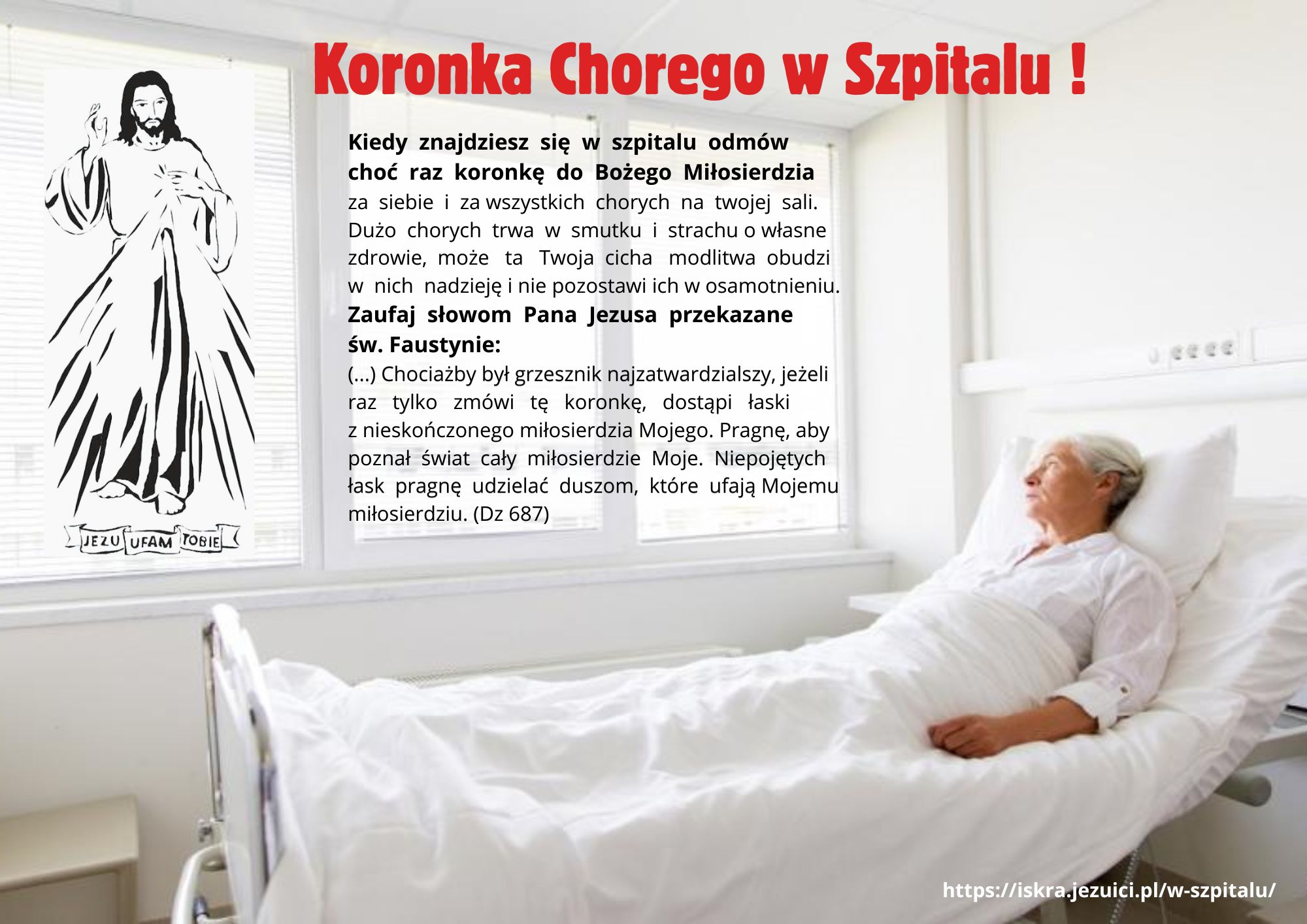 Kiedy znajdziesz się w szpitalu odmów choć raz koronkę do Bożego Miłosierdzia za siebie i za wszystkich chorych na twojej sali.